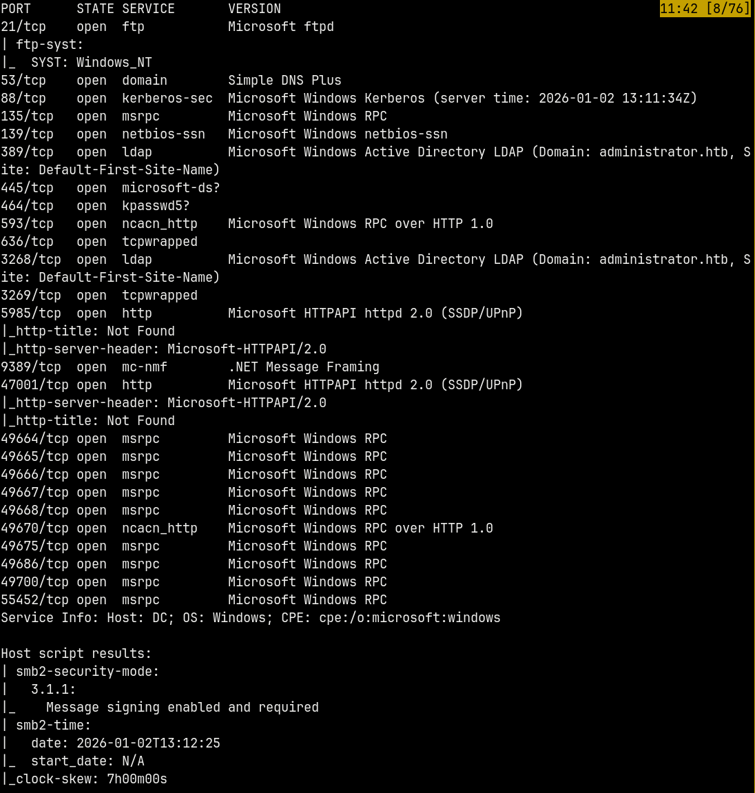 Also the domain name of the box is administrator.htb and the hostname of the box is DC, so the DC name would be DC.