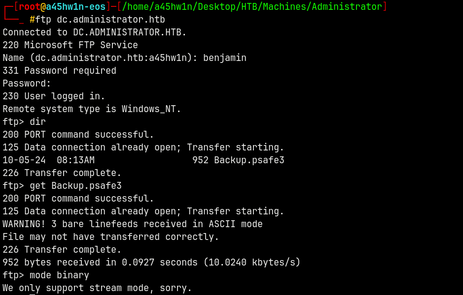 nxc ftp administrator.htb -u benjamin -p 'aashwin10!'
