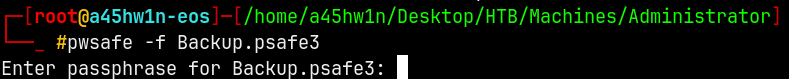 hashcat -m 5200 Backup.psafe3 /usr/share/wordlists/rockyou.txt