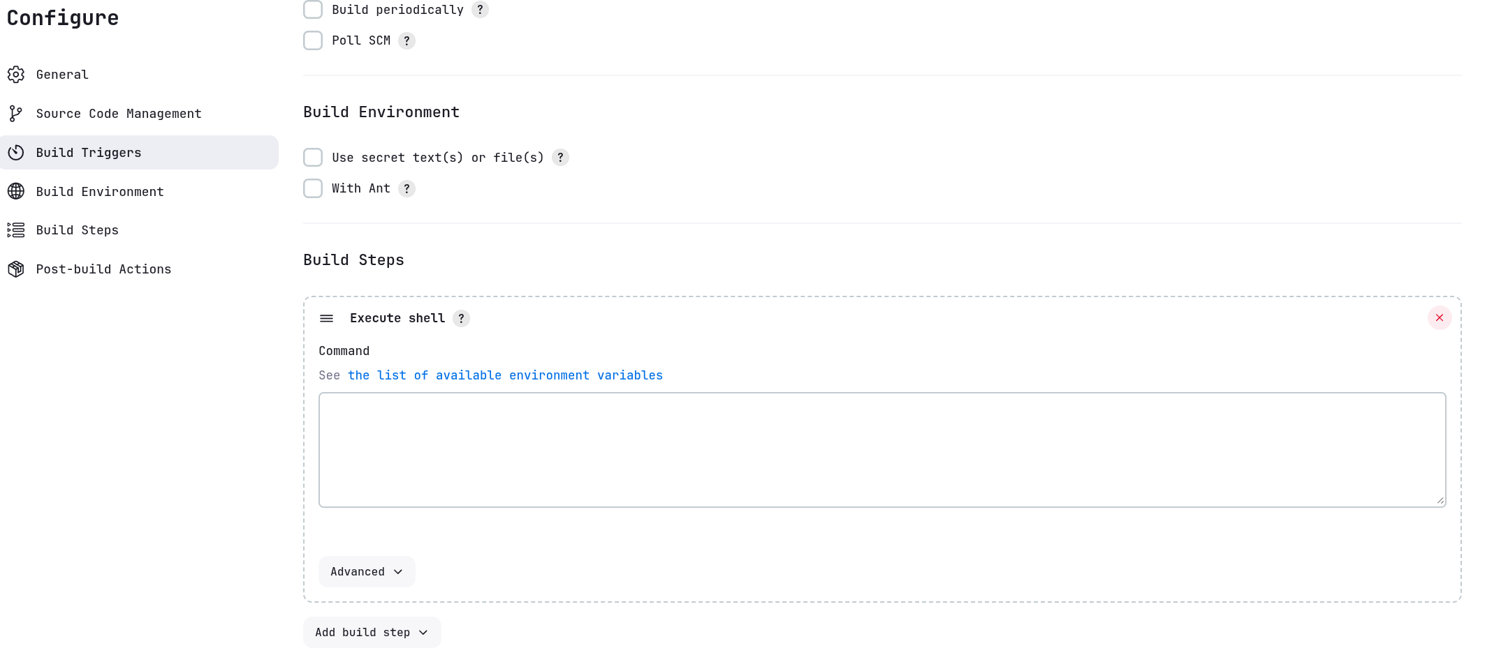 We will add Execute Shell from the build steps.