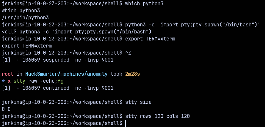 Lets stabilise our shell using python3 pty.