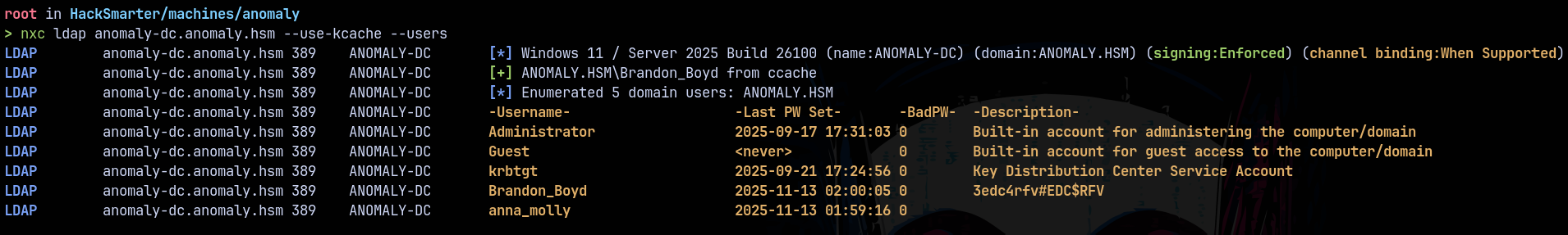 nxc ldap anomaly-dc.anomaly.hsm --use-kcache --users