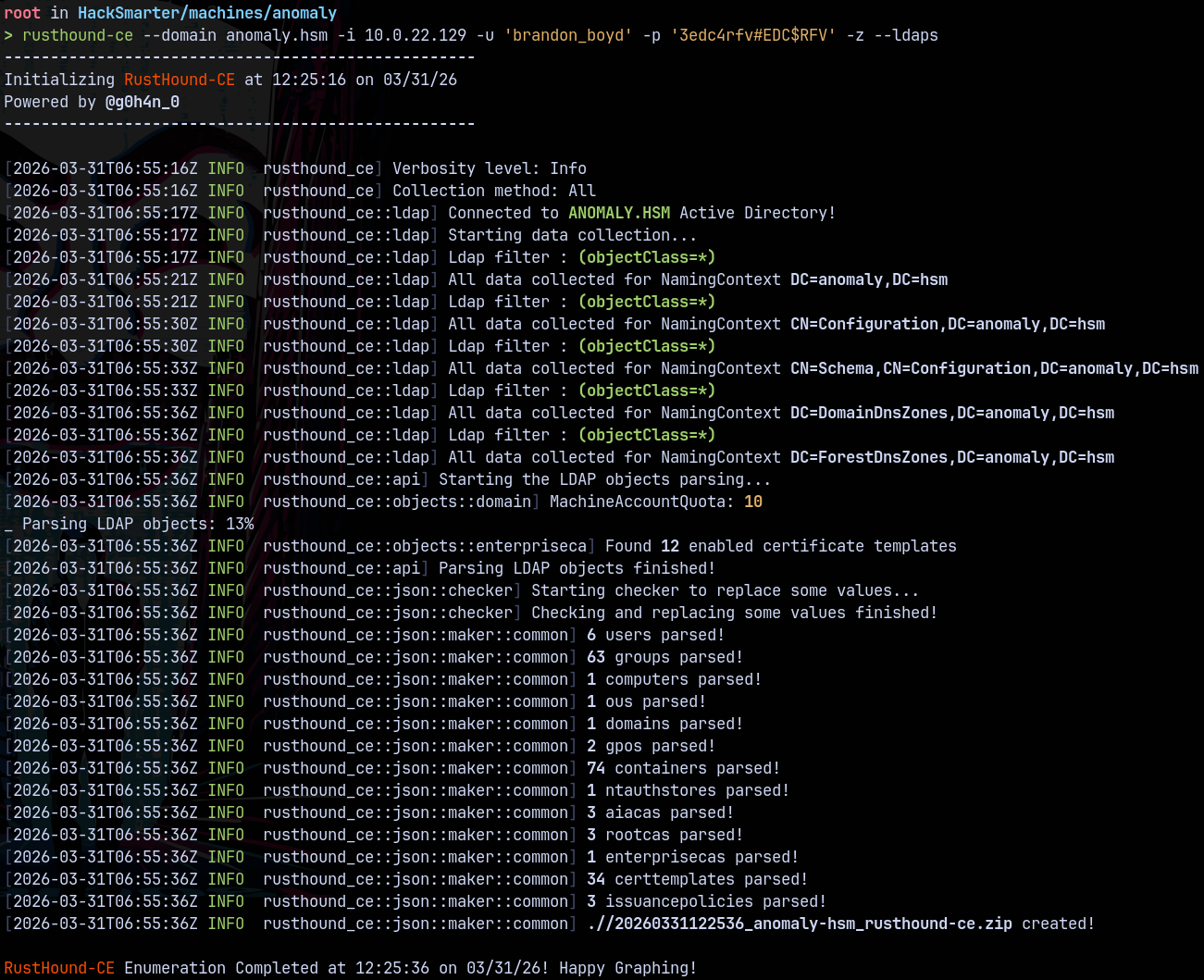 rusthound-ce --domain anomaly.hsm -i 10.0.22.129 -u 'brandon_boyd' -p '3edc4rfv#EDC$RFV' -z --ldaps