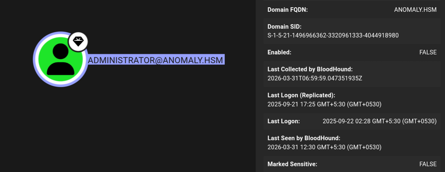 Anomaly is a medium based lab which consists of 2 machines one is running unix and another is windows as the domain controller. We start of with the linux box which is running jenkins on port 8080, logged in using the default credentials and ran a build task which returns a shell on the box then we escalate our privileges to root using command injection vulnerbility on a router_config SUID binary which is allowed to run as root. After pwning the linux box we see that there is another machine which is running windows domain controller hence AD and unix boxes communicate with windows boxes through kerberos realm, upon searching the kerberos directory on unix box we found a keytab file containing the credentials of a user on the domain, using kinit to initialise this user and we got their TGT which is valid on the domain. Gathering bloodhound data reveals that Domain Computers can do ESC1 which is ADCS attack to request certificates on behalf of any user on the domain, there were 2 domain admins present on the system and since the administrator account was disabled on the domain we request a certificate for another domain administrator resulting in full domain compromise hence pwning the DC.