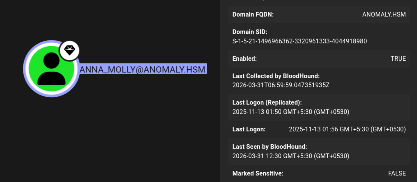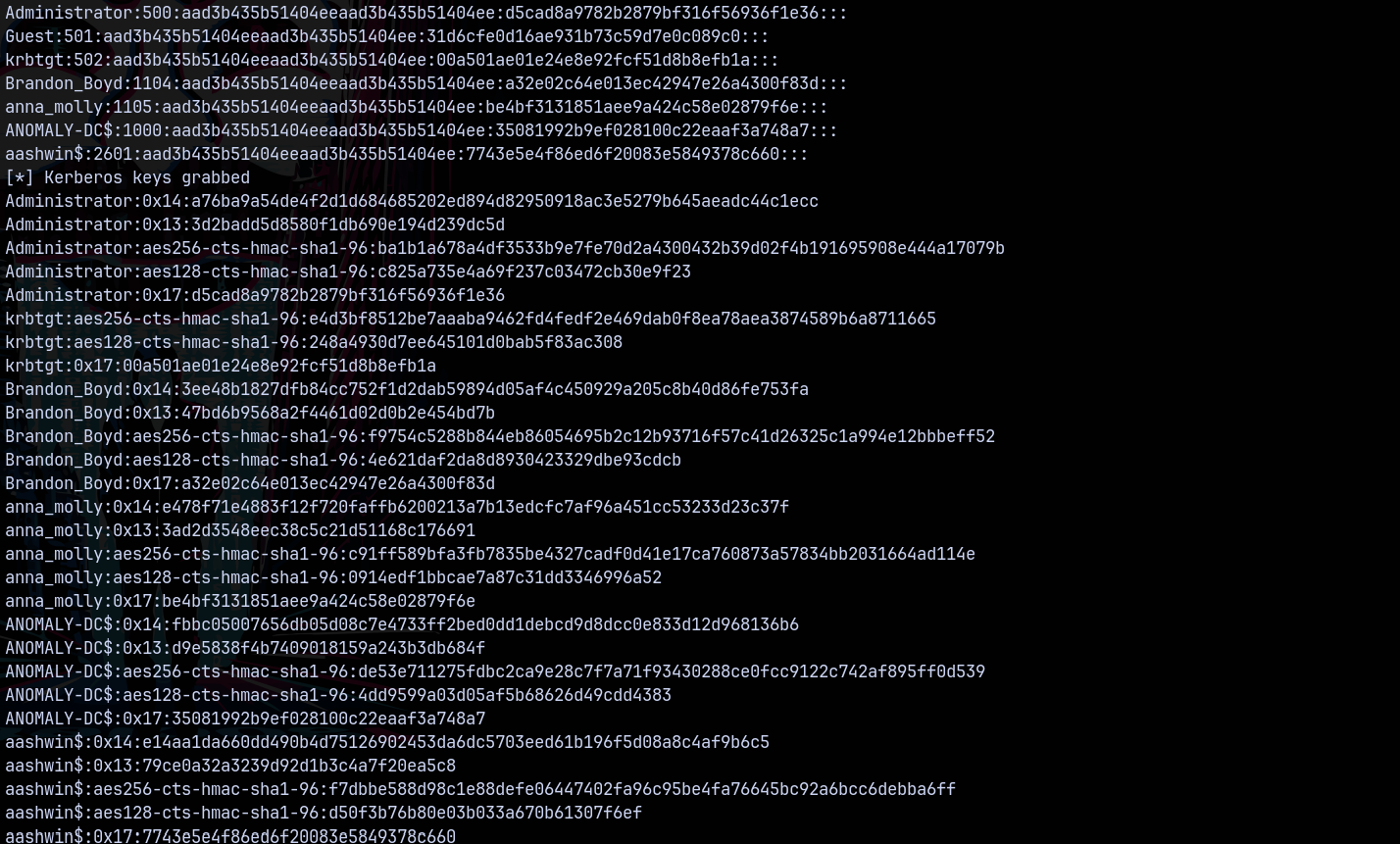 We now have the hash for Anna_Molly which is the domain administrator on anomaly.hsm