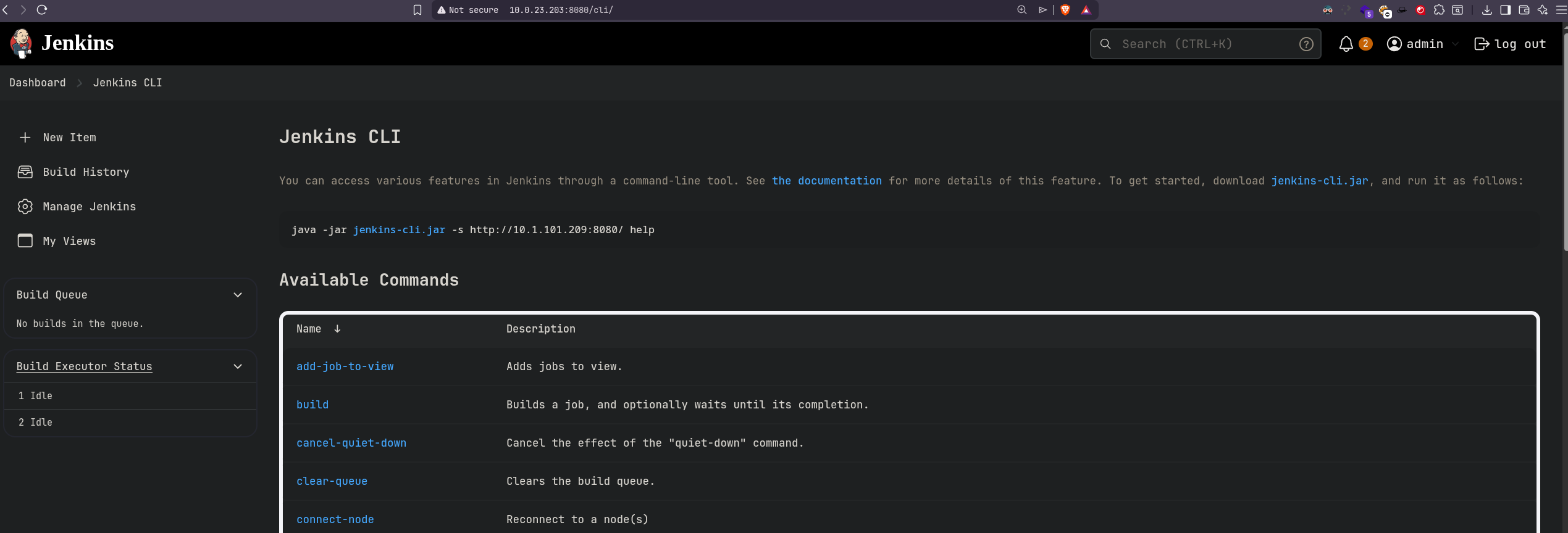 So to exploit jenkins we first need to create a build and to do that we visit this url. http://10.0.23.203:8080/user/admin/my-views/view/all/
