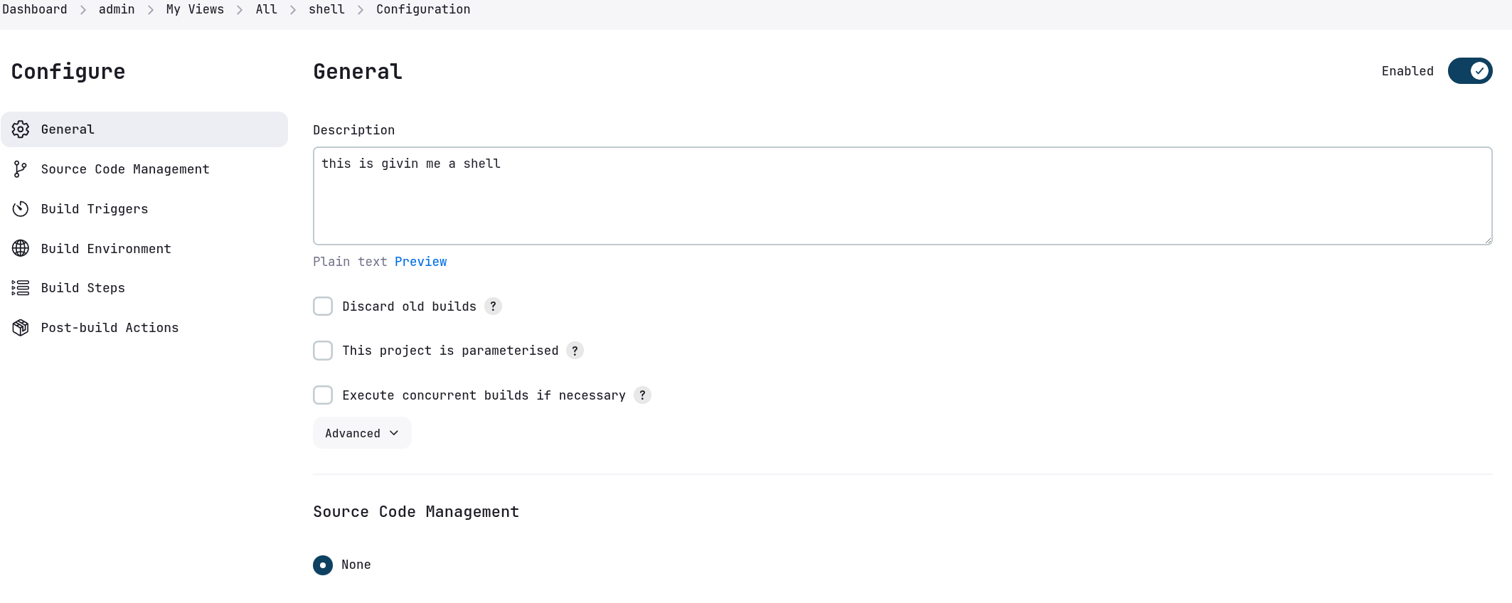 Now I’ll paste this in the Execute Shell window of jenkins and also start a listener on 9001 as this is our listening port on the rev-shell.