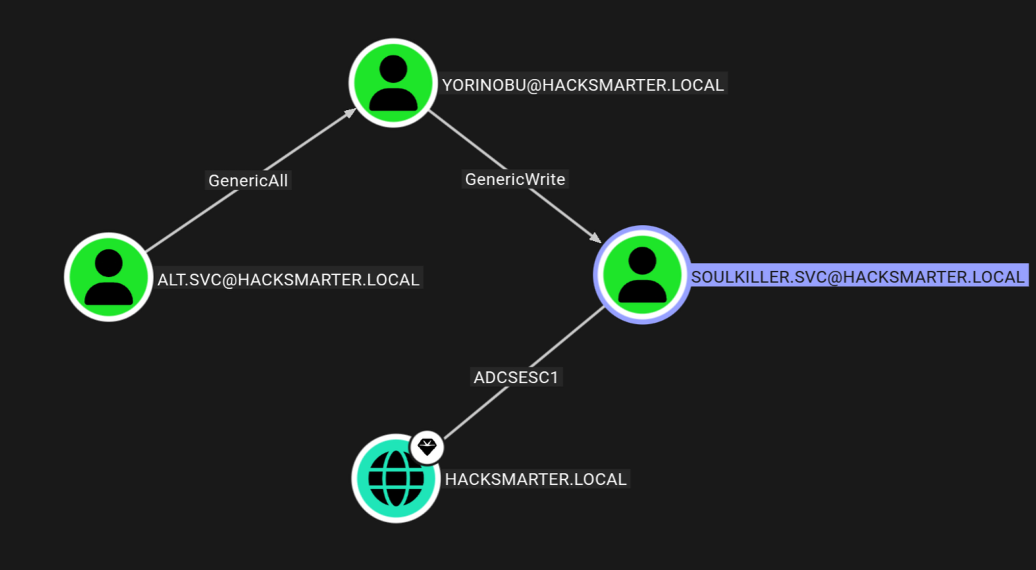 Now according to bloodhound soulkiller.svc can perform a ESC1 attack on the DC.