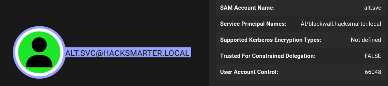 We have a SPN set on this ALT.SVC user, kerberoasting it using netexec.