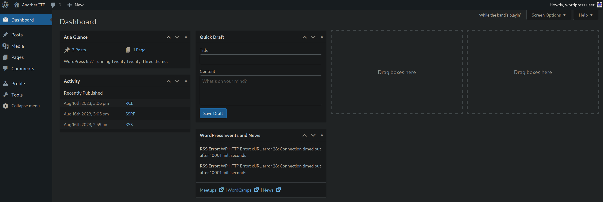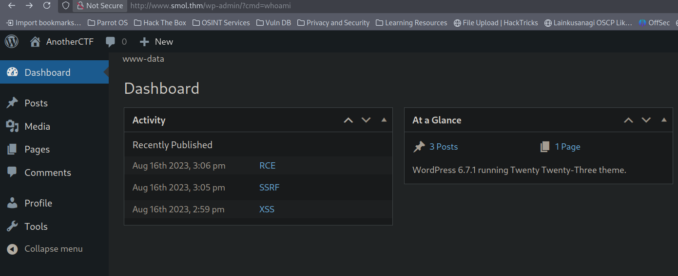 We can trigger this cmd parameter in the /wp-admin/ page since the lyrics are displayed on the dashboard.