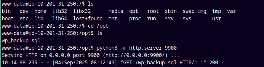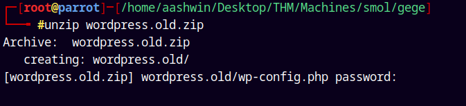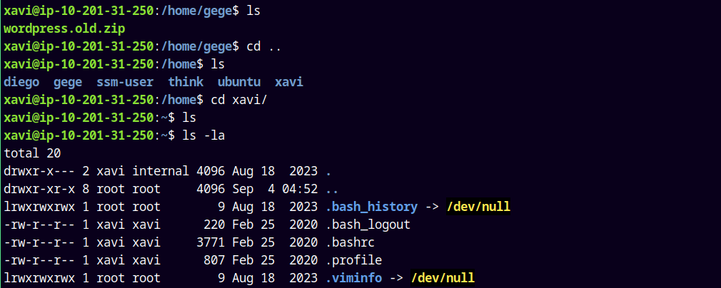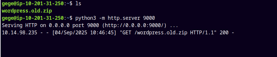 Now there’s a file named wordpress.old.zip in the user’s gege’s directory.
