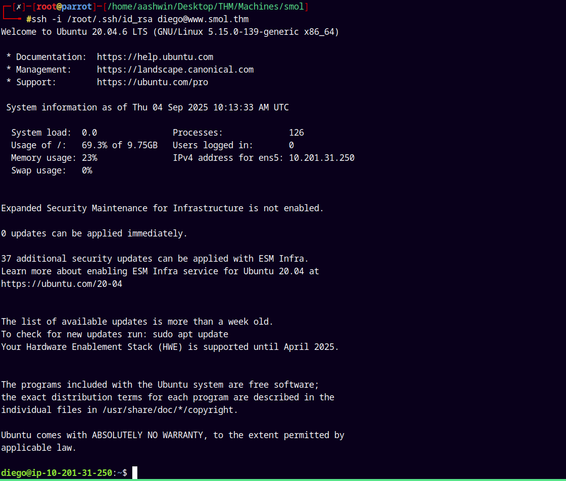 ssh -i /root/.ssh/id_rsa diego@www.smol.thm