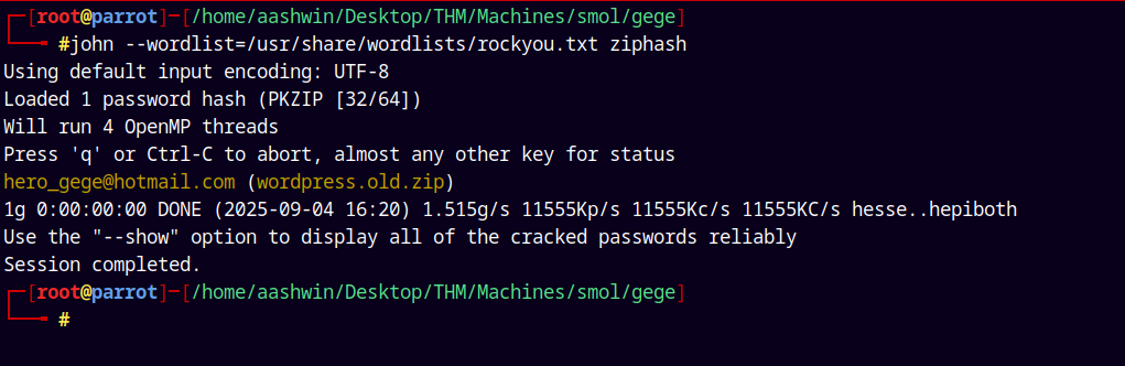 john --wordlist=/usr/share/wordlists/rockyou.txt ziphash