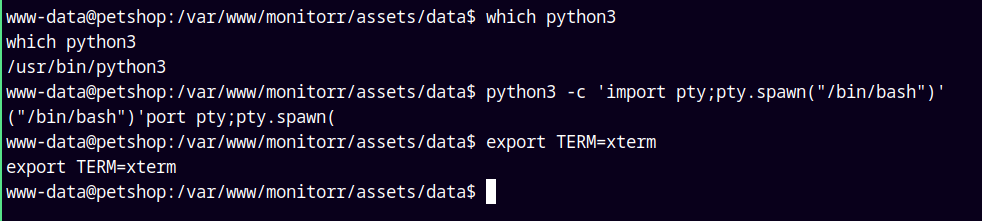 python3 -c 'import pty;pty.spawn("/bin/bash")'