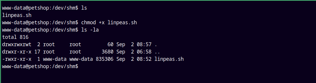 I will wget the file on our reverse shell in the /dev/shm folder.